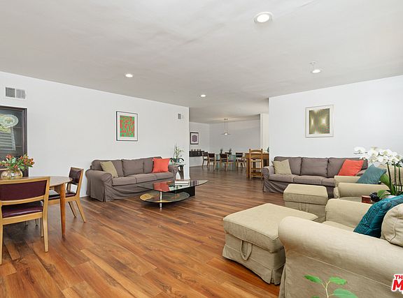 Stunning 4 bed/3.5 bath single level 2500+sf front-facing corner condo updated w/ contemporary clean line finishes in desired architectural 11-unit bldg. Prime location off the Wilshire Corridor, this property feels like your own home w/ no common walls, double-door entry into formal entry, powder room & closet. Open floor plan w/ Southwest exposure & filled w/ natural light. Oversized living rm ideal for entertaining w/ bar area, modern linear gas fireplace, large windows w/ custom shutters & spacious walls for art. Dining room opens to remodeled chef's gourmet open kitchen includes center island breakfast bar & french doors to side patio, ideal for morning coffee. Incredible typhoon Bordeaux granite countertops, 2 pantry closets, stainless steel appliances including Bertazzoni 6-burner range w/ griddle & double ovens, double-sized refrigerator/freezer. Tranquil primary suite overlooking greenery w/ french drs to side sunny patio, walk-in closet & 2nd closet. Updated marble finished primary bathrm w/ dual basins, spa tub & separate shower. 4th bedrm, used as home office/guest rm w/ custom built-ins. 2 bedrooms w/ ensuite updated bathrms. Additional features include contemporary wood-like flooring, full laundry room w/ storage, central ac/heat. 4 secured parking spaces, pets ok. Close to UCLA, Century City Mall. Fairburn Elementary.