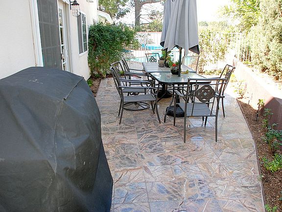 Reduced! Fabulous location atop the hills in Porter Ranch. Long concrete driveway with tons of privacy & plenty of parking for cars. Gated side yard w/pond, waterfall, grass and mature landscaping. Automatic roll up garage door w/remotes. New gorgeous wood laminate flooring around the whole downstairs. Recessed lighting highlights the large living room. Chefs kitchen offer new granite counter tops with matching table and stand. An abundance amount of new cabinets on both sides of kitchen. All new appliances to match. New tile flooring extends into the family room highlighted by recessed lighting & fireplace. Some dual pane windows around home as well as smooth ceilings. Master retreat offers new vanity area, recessed lighting, access out to pool & entertaining area plus a Private 3/4 bath w/tiled stall shower. 2 other bedrooms downstairs & a remodeled bathroom w/gorgeous new glass vanity. 3 more bedrooms upstairs with new carpets & 1 full bath. Entertainer's yard offers a wonderful gated pool outlined w/brick ribbon, a side yard for dog run or offers 2 sheds with plenty of storage. New composition roof, a/c condensor & more. Tax records show 5 bedrooms but is really a 6 bedroom home. Award winning schools such as Granada Hills Charter, Nobel middle & Beckford elementary.