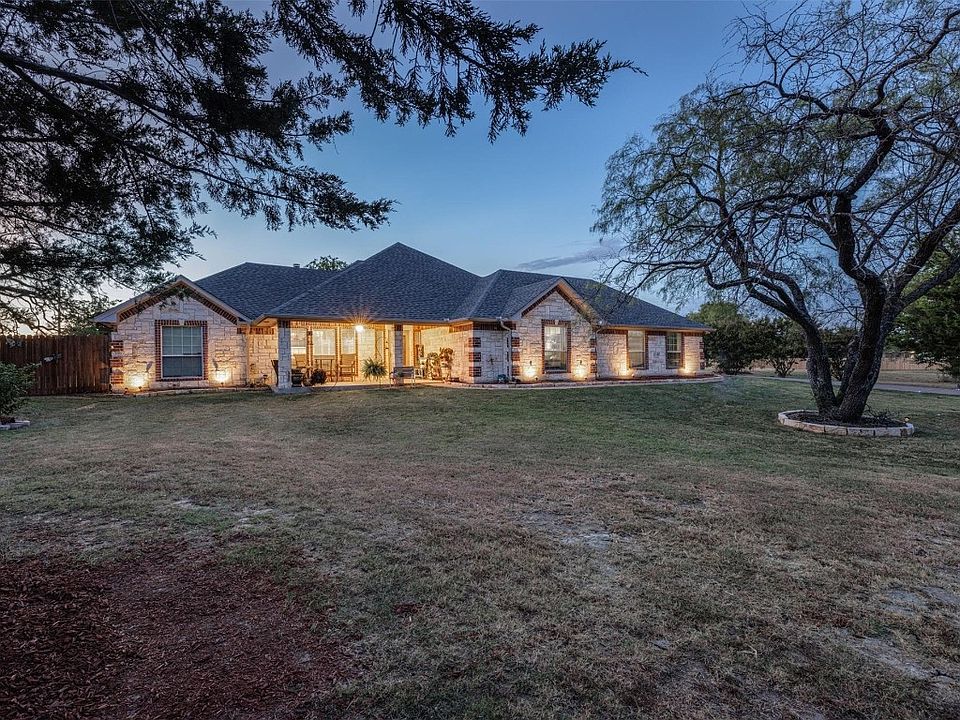 Indulge in luxurious lake living! Nestled away in the Waters Edge community, you'll find this stunning 3 bedroom, 2 bathroom custom built beauty! The formal dining and very open living area offers a decorative, woodburning fireplace. Gourmet, eat in kitchen flows nicely and provides vast amount of counter and cabinet space. Kitchen has granite counters, travertine backsplash, updated appliances and walk in pantry! Primary bedroom is open and airy, beaming with natural light! Ensuite provides his and her closets, large vanity with dual sinks, garden tub & separate shower. Secondary bedrooms are warm and welcoming, sure to make your guests feel at home. 20x23 game room with custom built ins makes the ultimate entertainment space. Relax and unwind on your extensive covered back patio! This property sits on two lots approximately 1.3 acres. 30x40 metal shop equipped with water and electric! This community has private lake access & private boat parking on Lake Tawakoni! PRICED TO SELL!