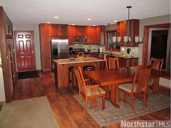 Inviting open floor plan, sunken living room with vaulted ceilings, floor to ceiling stone wall with fireplace, dual french doors to large covered patio, redwood siding, bay windows off dining room and master bedroom, mission-style oak doors, expansive cherry cabinetry with soft close doors and drawers on both levels, custom millwork throughout, beautiful travertine master bath and multi-head shower, large natural stone custom corner shower in lower level, high end granite countertops throughout kitchen and large lower level wet bar with refrigerator. Lower level features a large home theatre that includes a custom integrated Dolby 7.2 audio system 120" theatre screen. Built in storage for media and electronic components. Billiards area with custom drink rail and secondary audio/video hookups. Finished attached garage with ample LED lighting, ceiling fan, hot/cold water and floor drain. Newer windows and roof. Simply put, this is a spectacular home. Everything updated or remodeled on both floors in 2014/2015! House sits on nearly 3 acres, and includes a private pond. Heavily wooded, very private, fenced yard, 30 x 40 insulated Pole Barn built in 2009 with concrete floor, dual 14' doors and 16' walls - an outdoorsman's dream!