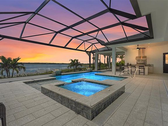 Outdoor kitchenBonus roomQuartz countersPanoramic water viewsCustom pool and spaGreat roomExpansive walk-in pantry