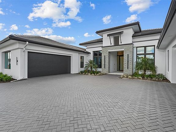 A modern lakefront masterpiece in Wild Blue, this never-lived-in Arthur Rutenberg estate captures the essence of luxury Florida living. Completed in late 2025 and move-in ready, the home offers a rare opportunity to enjoy new construction without the wait. With 5 bedrooms, 5.5 bathrooms, 4,631 square feet, a bonus room, office, and a versatile flex space off the owner’s suite, the design blends functionality with elegant entertaining spaces. A highlight of the home is the private multi-generational studio with its own entrance, kitchenette, full bath, and living area, perfect for extended family or long-term guests. From the moment you step inside the pivoting front door with switchable privacy glass, the home makes a statement with soaring ceilings, wide-plank wood floors, and walls of glass framing panoramic water views. The great room is an entertainer’s dream, seamlessly connected to the chef’s kitchen appointed with quartz counters, custom cabinetry, a Thermador Appliance package (Bosch Dishwasher), expansive walk-in pantry provides abundant storage, prep space, and an additional refrigerator. The open design allows the main living and dining areas to flow together effortlessly, creating a bright and welcoming atmosphere ideal for gathering with friends and family. The owner’s retreat is a private sanctuary designed to impress with dual custom walk-in closets by Closet Envy, and a private exercise room with durable slip-resistant flooring for your personal wellness routine. Relax in the spa-inspired ensuite featuring a freestanding soaking tub and an expansive Roman shower with triple shower heads and designer tile. Each additional bedroom is paired with its own ensuite bath, ensuring privacy and comfort for family or guests. The outdoor living experience is truly exceptional. A custom pool and spa with cascading fountains, fire bowls, and LED lighting sets the stage for relaxation or entertainment, while the expansive lanai offers a full outdoor kitchen, bar seating, and retractable screens that make the space usable year-round. From peaceful mornings with coffee overlooking the lake to vibrant evening gatherings under glowing sunsets, the backyard becomes a destination in itself. Wild Blue is more than a neighborhood, it is a lifestyle community built around connection, recreation, and wellness. At Midway Park, residents enjoy tennis and pickleball with professional instruction, fitness classes on the event lawn, playgrounds, a dog park, and scenic walking trails. A robust calendar of social activities ensures there is always something to do, whether it’s live music, food truck nights, or wellness programs that keep neighbors engaged and active. Skip the wait of new construction and step into a move-in-ready estate that brings resort-style living to your everyday life. This is your chance to claim one of Wild Blue’s finest properties and begin your next chapter surrounded by beauty, comfort, and endless possibilities. ***Must see Cinematic Video Tour available.***