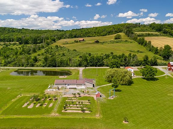 Gorgeous views abound from every angle of this property! Enjoy a private orchard with over 50 apple trees, three ponds, and beautiful lands. This property has so much to offer with 66.5 acres of land, three ponds, approximately 20 acres of wooded land, oversized garage and barn. Enjoy the sunsets and sunrises from both the front and back no-maintenance decks of the primary residence. Relax by the fire pit for the weekend or enjoy your private apple orchard while your chicks come and go from their high-rise coop. This property has it all. Oil and Gas Rights Convey unleased.
