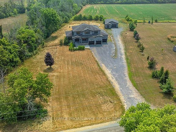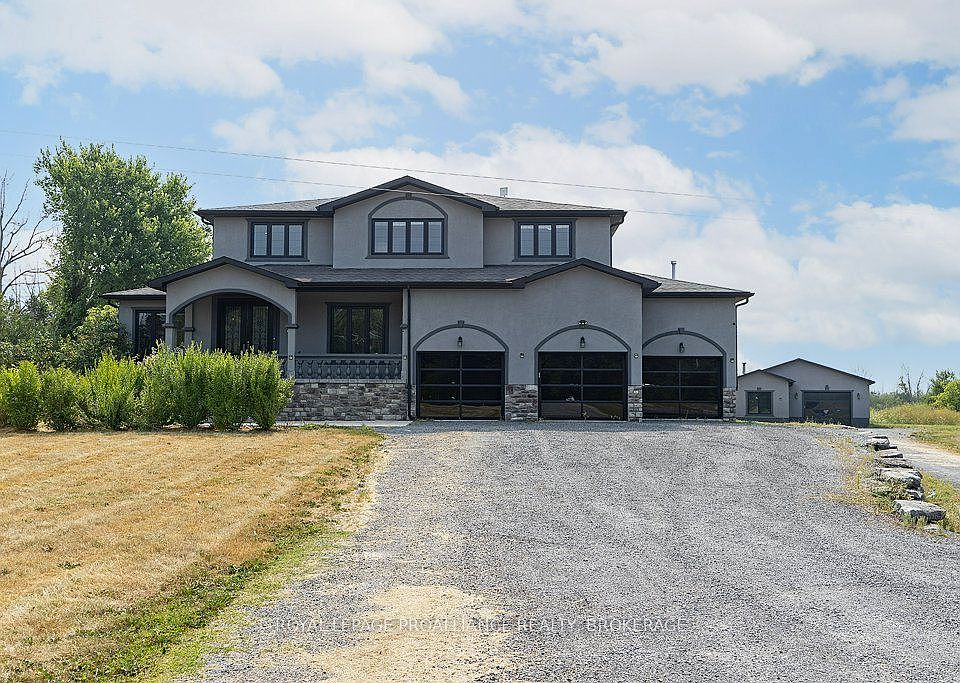 Custom-built expansive estate where luxury and exceptional craftsmanship meets the tranquility of rural life. This stunning residence offers approximately 4500 ft2 of finished living space situated on almost two acres between Kingston and Napanee. One of the many highlights of this property is the detached heated garage behind the home, perfect for a workshop, hobbyist or home-based business enhancing the propertys potential and opportunity. From the moment you step inside, you're greeted by soaring ceilings, elegant arches and stately pillars that elevate the homes architectural beauty. Hardwood floors flow through the living room, dining room, family room and main floor hallway. The gourmet white kitchen, adorned with granite countertops and built-ins, invites culinary creativity for gatherings of any scale.The kitchen opens into a sun-filled family room with direct access to a south-facing patio for relaxing and entertaining. 4+1 spacious bedrooms, including two primary suites, is complemented by 4 1/2 bathrooms for utmost convenience. One of two primary bedrooms is located on the main level for guests and multi-generational families. Upstairs, the second primary suite features a balcony and a walkthrough/walk-in closet to the spa-like 5-piece bathroom with private shower. The finished lower level can be anything you want it to be,showcasing a rec room, space for exercise equipment, a workspace, storage and a 5-piece bathroom with sauna. The massive 3-bay attached garage accommodates your familys vehicles and recreational equipment. This extraordinary residence is not to be missed; its all here waiting for you. Come see for yourself!