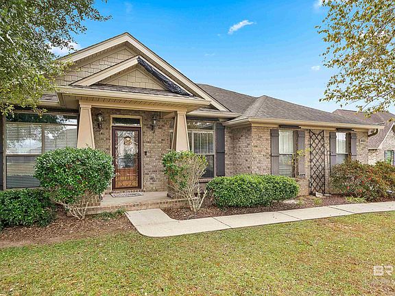This home is located in Pebble Creek, a well-established neighborhood in Foley just minutes from the white-sand beaches, Tanger Outlets, and a variety of shopping, dining, and entertainment options. Enjoy the convenience of coastal living while still being tucked in a quiet neighborhood setting. This inviting 4-bedroom, 2-bath home features a desirable split floor plan and beautiful design details throughout, including engineered hardwood floors, vaulted and tray ceilings, and a cozy gas fireplace that anchors the living area. Updates made by the current owners include a new dishwasher and garbage disposal. The kitchen is equipped with granite countertops, ample cabinet space, and a breakfast area for casual dining, while a separate formal dining room provides the perfect setting for gatherings. The spacious primary suite offers a walk-in closet, garden tub, separate shower, double vanity, and direct access to the screened back porch for quiet mornings or evening relaxation. Three additional bedrooms share a full bathroom, providing comfortable space for family or guests. Step outside to discover one of the best features of this property, a private, fenced backyard designed for outdoor enjoyment. The large screened porch extends to an open patio surrounded by lush landscaping. A powered storage building offers extra space for tools and hobbies, and the home is complete with gutters, a Rain Bird sprinkler system, and a side-entry double garage. Buyer to verify all information during due diligence.