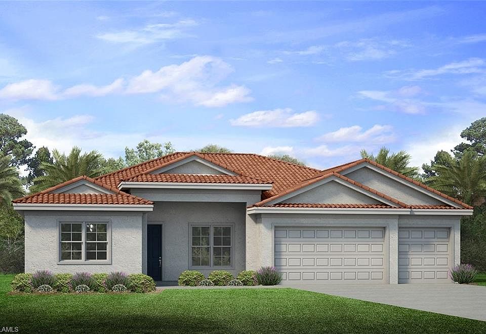 Under construction and will be ready for 2022!! Gorgeous Sage plan within an easy drive to the beach. Enjoy the 4 bedroom 3 bath home with a 3 car garage all on a 80x120 property. Light and bright split plan home with a foyer entry, off the foyer double french doors opens to the den, then leads into a large open great room with large triple sliding glass doors to the back yard. The galley kitchen features an island with counter seating and a pantry. The main bedroom overlooks the back yard and has en suite bathroom, double sinks, stall shower and walk in closet. The separate laundry room comes with the washer and dryer. Home features white cabinets, granite tops in kitchen and bathrooms and stainless appliances. Other features include: impact windows and sliding glass door, 8 ft interior doors, upgraded trim package. SWFL building code, concrete block construction. Close in location that is convenient to everything!!!