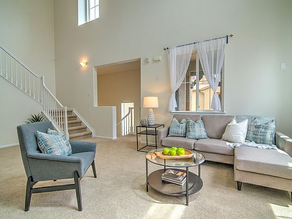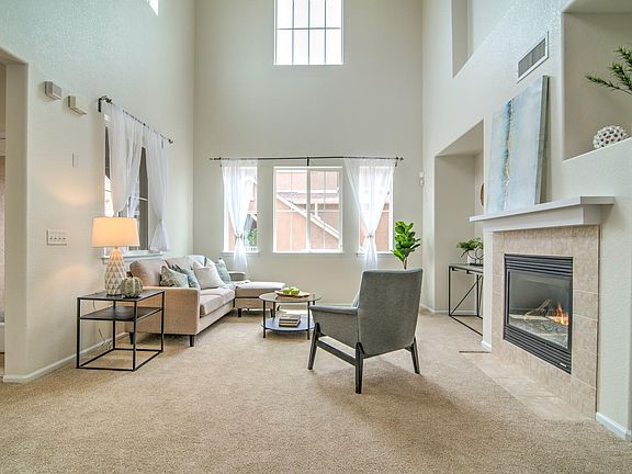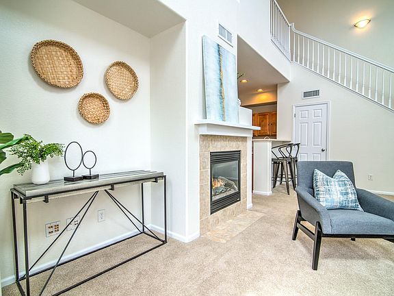 This corner unit 3 story townhome is bright and airy with new paint, carpet, hardware throughout! The lower level hosts a large 2 car garage with room for storage and welcoming entryway with a coat closet. On the 2nd floor is the large living room with double height vaulted ceilings, luxurious large windows & gas fireplace, spacious kitchen with stainless steel appliances & bar seating, formal dining room, and covered balcony. Also on the 2nd floor is the second bedroom, a full bath, and a large laundry room. The 3rd floor features a huge, private master suite with a five-piece ensuite bath, including a deep soaking tub, a dual sink vanity, a separate shower, and a walk-in closet! Other smart home updates include Nest thermostat and a combination front door lock! With views over the green spaces and quick access to the Highlands Ranch trail network, it is a lovely location! Within walking distance to many attractions and a shopping center.