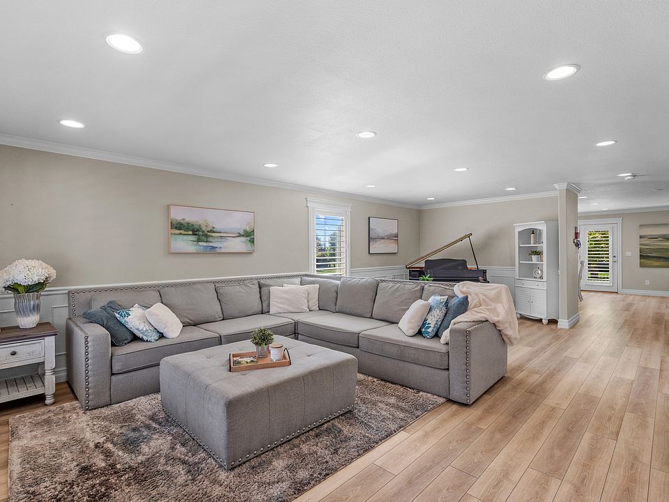 This beautifully updated home features a spacious chef's kitchen with a 10-foot island, quartzite countertops, walk-in pantry, double ovens, two dishwashers, and a large fridge/freezer! The functional layout includes a dedicated office/homework space and convenient dual laundry hookups-plus 2 sets of washers and dryers are included! The expansive primary suite offers two walk-in closets and a luxurious en-suite bathroom. The primary bath has a wet room (three shower heads & a freestanding tub), dual sinks, makeup station, and radiant heating. Each bedroom includes its own walk-in closet! The plantation shutters and crown molding throughout the home are just the icing on the cake! Enjoy beautifully landscaped grounds and breathtaking mountain views -all just minutes from American Fork Canyon. This home will make all your wildest dreams come true. - Napoleon Dynamite