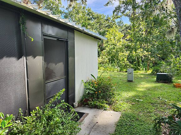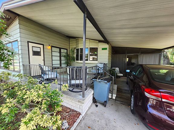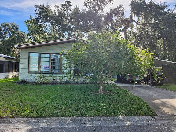NO FLOOD/WATERFRONT/55+/2BD2BA/PLUS DEN/1092SQ/MANY UPDATES/METAL ROOF/UPDATED CPVC PLUMBING/NEW AC/UPDATED KITCHEN AND DINING/ALL NEW FLOORING/NO STRIPS DRYWALL FINISH. This is a must see located on a perimeter lot backed up to the Rice Creek with nothing behind but nature, nature, nature. You cant help but to relax as soon as you look out the back of this beautiful lot. The home is updated big time from the all new butcher block counters, to the extremely high end laminate flooring installed, to the ship lap siding in the kitchen and dining simply gives this one a tranquil nautical flair when you enter. The front drive is car port covered with a side extension for a covered golf cart parking area, offers a covered front porch area with a front door entrance into the front located den and into the living room through sliding glass doors. Off the drives back is a very large all screened lanai with a storage/laundry area just behind. The side door entrance through the screened lanai brings you into the wide open dining and kitchen. just off the dining is the living room flowing into the front den. The baths have been updated with new sinks and plumbing, Both bedrooms are located in the back with the guest bedroom just off the main bath and the master just across the hall. The master offers a walk-in closet, an en-suite with a one sink vanity, storage area, and a walk in style shower. This home has been highly cared for and expertly updated, if you are looking for that one in a park that offers semi privacy in the back and tons of soothing nature you want to see this one. This home is located in the Pleasant Living 55+ senior community. Pleasant Living offers a full range of senior activities, a fully operating clubhouse with screened year round heated swimming pool, exercise area, billiards, shuffleboard, horseshoes all aimed at an active senior lifestyle, Park monthly fee of approx. $868.00 monthly includes all mentioned amenities plus garbage pickup twice weekly at your home. Hurry this one won't last.