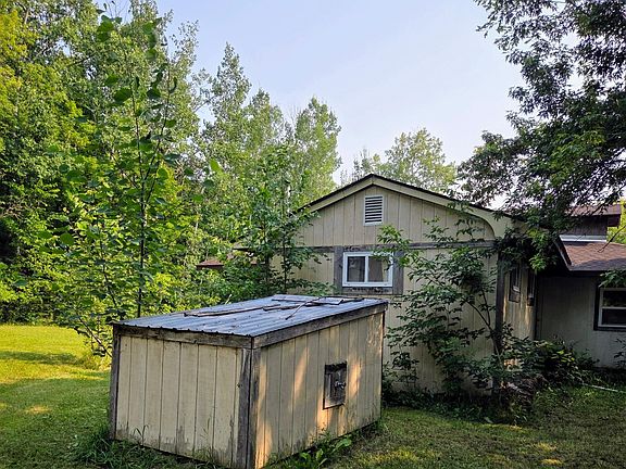 Located just off the Blue Ox Trial for Atv's and snowmobiling. Property has mature trees. Large yard. Mobile home is in need of repair. Garage has propane heat. Insulated. Concrete floor. 2 standard garage doors. Service door.