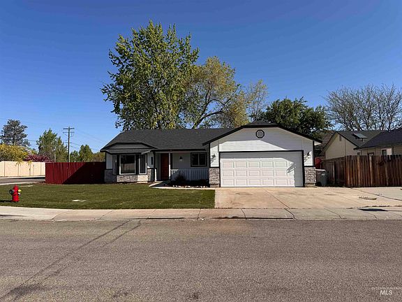 Welcome to this beautifully remodeled almost 1500 sq. ft home! With NO HOA's, this house consist of a brand new roof, new flooring throughout, exterior and interior paint, and updated bathrooms and kitchen! When you step inside you will be greeted with an office space to the left that can also be a 4th bedroom! The hallway entrance becomes an inviting open-concept living space that seamlessly blends with the high vaulted ceiling living room, dinning area, and kitchen. The kitchen boast with beautiful quarts countertops! The bedrooms are a generous size with plush new carpet. The location is excellent, including being minutes away from the Village at Meridian, the Boise Towne Square mall, and many shopping, dinning, and parks. Let's make this home yours!