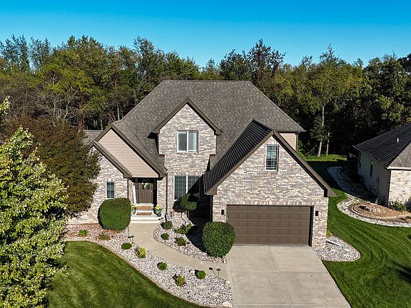 Step inside this stunning two-story home offering over 4,350 finished square feet of living space! Featuring 4 bedrooms (with potential for 6) and 4 baths, this home combines elegance, comfort, and versatility. The main living area welcomes you with tall vaulted ceilings and large windows that fill the space with natural light. The spacious kitchen provides plenty of room to cook and entertain, complete with stainless steel appliances and a 2 way Kitchen/Living room fireplace. The main-level primary suite is a true retreat, featuring a luxurious ensuite bath with a double vanity and generous walk-in closet. Upstairs, you'll find three additional bedrooms, perfect for guests or a home office and a full bath. The fully finished basement expands your living space (with the potential of an in- Law arrangement) even further with high ceilings,a large recreation room, kitchenette,two additional finished rooms (ideal for a 5th and 6th bedroom, office, or gym) a beautifully updated modern bathroom and a large storage room. Step outside to enjoy the newly painted deck, new pool liner and pump, fresh landscaping and deck lighting, and no rear neighbors for added tranquility. Recent upgrades also include newly installed carpeting throughout, 2024 fully finished 100k basement build out, lifted and resealed driveway, new electrical panel, new sump pump and sewer ejector pump, new back exterior and interior doors with frames, and a new garbage disposal. Located in a prestigious Lake Community within Crown Point Schools, this home offers space, style, and peace of mind with all the right updates already done!