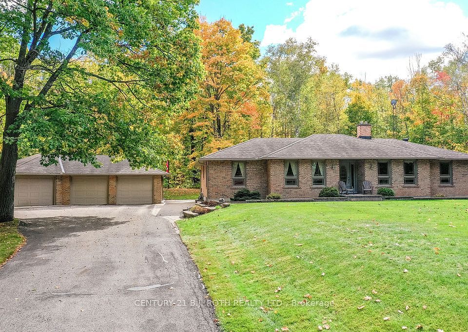 Welcome to this meticulously maintained of over 2300-square-feet finished bungalow nestled on 2.58 acres of beautifully landscaped property in one of Severn's most desirable estate areas, just minutes from Orillia. Surrounded by mature trees, this home offers exceptional privacy and a true country setting with the convenience of nearby amenities.The residence features three bedrooms, two bathrooms, and a bright, open layout designed for both comfort and functionality. Tens of thousands of dollars have been invested in professional landscaping, creating an impressive outdoor retreat highlighted by a composite deck and a newer hot tub perfect for entertaining or quiet relaxation.The property's exterior has seen extensive upgrades, including new soffit with pot lights, fascia, eaves trough, vinyl siding on the back of the home and two sides of the garage, all new main-floor windows, a new back door and patio door, and a re-plumbed well system for peace of mind. The triple-car garage provides generous space for vehicles and storage, while the landscaped grounds and mature trees enhance the sense of seclusion and natural beauty.This exceptional Severn property blends quality, privacy, and thoughtful updates in a location thats both peaceful and convenient ideal opportunity for those seeking refined country living minutes from town.