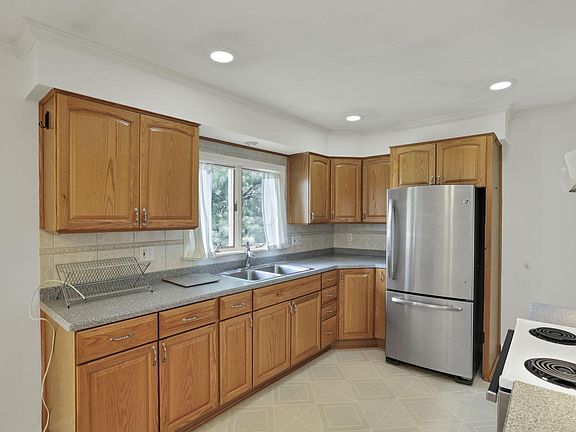 The kitchen, warm & inviting, features easy-to-clean Corian countertops & a newer stainless-steel GE refrigerator, with all appliances conveying, so your culinary journey begins with zero hassle. Beyond the kitchen, sliding glass doors open into a bright three-season room that overlooks your private, fenced yard—perfect for quiet mornings or relaxed evenings.