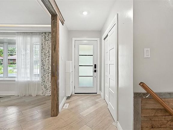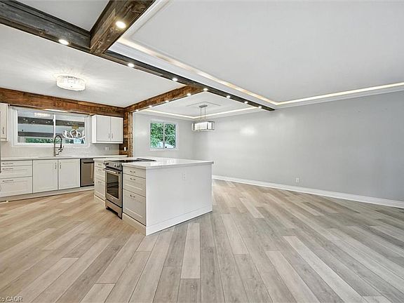 Welcome to 1059 Marley Crescent nestled in a family-friendly enclave in southwest Aldershot. Tucked on a quiet crescent, perfect for kids to walk to school, parks & bike the nearby trails. Easy access and commute to all major highways to Niagara, Hamilton or Toronto. Minutes to the RBG, community centre, GO Station & downtown Burlington’s boutique shops, cafes & restaurants. Pride of ownership shines throughout this fully renovated 4-level side split, featuring a single-car garage, an oversized double drive with space for 4 vehicle and bonus parking for a trailer or boat. Major upgrades invested in this open-concept main level with a white quartz kitchen, stainless appliances and a large island flowing into the living/dining area. Rustic beams, custom woodwork, diagonal luxury vinyl floors, LED pot lights, new trim, stainless/wood railing, fresh paint, built-ins & plush new carpet add warmth & style. Family room features two lookout windows & a cozy gas fireplace. A convenient 4th bedroom with ensuite access to the newly renovated 3-piece bath completes the third level. The basement offers spacious rec room with wall-to-wall closets, electric fireplace, striking feature wall & a den ideal for a home office. Other features: hot tub, above ground pool, fireplace, in-ground sprinklers. Exterior painted. Renovated, impeccably maintained & tucked into a serene, cedar-lined setting.