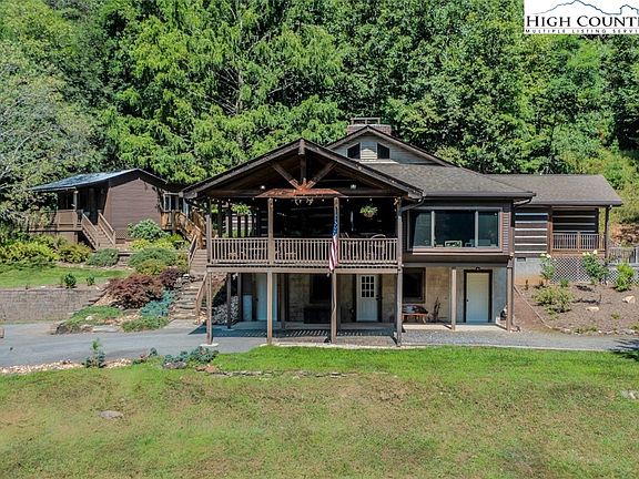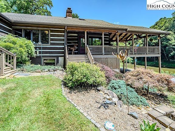 Discover unparalleled tranquility in this magnificent 3128 sq/ft log home, located on 300 feet of private river frontage on the New River. This 2.8-acre estate, conveniently located off a state-maintained road, provides the perfect blend of rustic charm and modern luxury. On the main level, wood floors and logs sourced initially from an 1880s cabin tell a story of timeless craftsmanship. The living room is a masterpiece, boasting a cathedral ceiling with exposed beams, oversized windows, and a captivating custom floor-to-ceiling stone wood-burning fireplace. The heart of the home, the kitchen, showcases upscale stainless steel appliances, granite countertops, a gas cooktop, and custom distressed chestnut cabinets. Practical amenities include a large, custom walk-in pantry and a convenient mudroom with ample storage. A large sunroom provides a versatile space for an office or sitting area, featuring a wall of windows offering stunning views of the New River. The main level master suite is a luxurious sanctuary, complete with a vaulted ceiling, exposed beams, an oversized tile shower, a walk-in closet, dual vanities, and a relaxing whirlpool tub. A second bedroom and bathroom on the main level are perfect for guests or a growing family. The newly renovated lower level offers additional living flexibility with two extra sleeping areas, a family room, a full bathroom with a custom vanity and tile tub, a dedicated craft room, and even a second mud room. Entertain guests or relax on the expansive 525 sq/ft covered porch overlooking the New River. The meticulously maintained grounds feature mature landscaping, a paved driveway, an elegant stone entry staircase, an under-deck carport, custom stone retaining walls, split-rail fencing, and an inviting outdoor fire pit area. The property also features a double-bay wood storage building, a partially finished hideaway attic, and a separate 400 sq/ft heated shop building equipped with 220V electric service, providing ample space for various projects. For direct access to the river, the property features a private stone stairway leading down to the water. If that’s not enough, the property also includes a hazelnut orchard and a second storage shed on the upper part of the acreage. The upper acreage could also be surveyed off for a separate homesite or investment opportunity at a later date. While some of the included acreage is located within the flood zone, the home itself sits just outside of the current 100-year flood zone. Finally, enjoy the convenience of being less than a twenty-minute drive from Jefferson and West Jefferson.