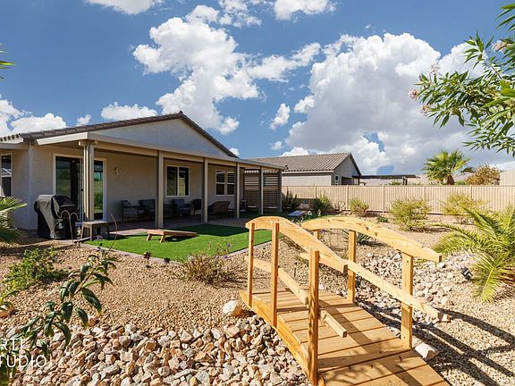 * Gated Community - 3 Car Garage - Fully Fenced *. Welcome to the popular "Willow" model by Beazer Homes known for its energy-efficient construction. This home features 3 bedrooms, 2 full bathrooms and an open/inviting layout within a 55+ gated community (24/7) It also includes a 3-car garage with extended depth ideal for larger vehicles, complete with shelving and cabinetry, utility sink, water softener system and a mini-split unit for climate control. Inside, the finishes include granite countertops throughout, luxury vinyl plank flooring with plush carpet in the bedrooms, custom blinds, upgraded ceiling fans, stylish hardware on cabinetry and custom shelving in all closets. The kitchen is equipped with high end appliances and reverse osmosis system for filtered water. The primary suite features a barn door entry into bathroom, dual vanity, spacious walk-in shower and a walk-in closet with custom shelving. Outdoor spaces are an entertainers dream with a paver driveway, walkway, and patio; extended awnings for shade; a fully fenced yard; a quaint bridge over a pebble stream; and a convenient shed. The HOA provides front, back and side landscape care along with monthly exterior pest service. Come see this home before it is gone!