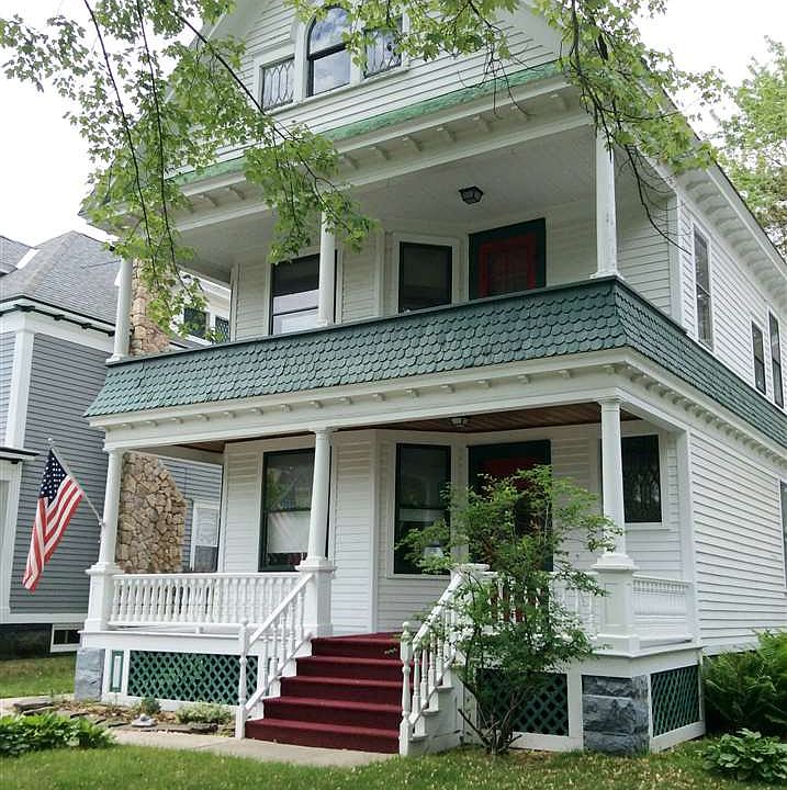 Move in Ready Spacious Sunny 2 family. Gleaming hdwd flrs, stain glass windows, built ins, architectural details. 1st flr bath w claw ft tub plus 2nd bath w shower, updated appli kit w pantry. Bdrm will fit a king size bed. Inviting front, rear porches. Private fenced yd for barbecues. 2 car garg, 3 car pkg off alley. CLEAN basement w separate newer heat, hot H2O, CB electrical. Insulated.Triple track windows. Owner Occupied rents could be minimum $950.Taxes are without any exempt water, trash included