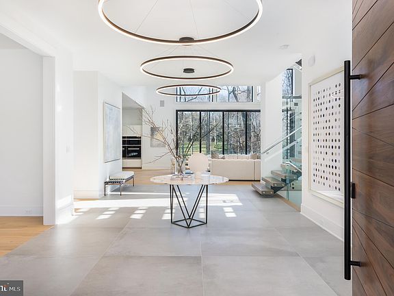 1059 Rector Lane is a true triumph of exceptional design and craftsmanship. Seamlessly blending the best in natural materials and contemporary high-end finishes. Upon first impression, one is greeted by a stunning single-axis door that rotates to reveal a wide greeting hall and open-concept floor plan. The expansive main hall offers uninterrupted sightlines to almost all living areas on the main level, setting the tone for a light-filled ambiance radiating throughout. The main level kitchen is the heart of the home, boasting twin 10-foot islands clad in top-of-the-line Miele appliances. The effortless combination of honed quartz, glass, and porcelain Dekton countertops imported from Germany elevates the space’s attractive functionality. Crafted with exclusive precision by Bauformat Küchen, the cabinetry is a work of art in and of itself. Anchored on both sides by open living areas, the kitchen truly serves as the central hub. To one side, an inviting living room boasts wraparound glass windows, perfectly adhering to the home’s ethereal nature. On the other side, the double-height great room with a fully retractable window wall mirrors a soaring illuminated wine display - allowing for the storage of 210 bottles. Opening the sliding glass doors introduces a rear terrace expanding the entire width of the residence, while a stone feature wall with an integrated linear fireplace tops off the chic surroundings. Just off the kitchen through an elevator hall with adjacent walk-in pantries invites you to indulge in the formal dining room, fully open to the reception area. With its impressive 28-foot length, this banquet-sized room hosts fluted walls and contemporary fixtures exuding simplicity and modernity. Ascend to the second level via the custom glass and oak floating stairwell. With its sleek glass railings and open risers, the staircase rises alongside the glass-enclosed wine display, creating a dramatic focal point that functions as a working piece of art. As you make your way up, you'll find a generous upper-level mezzanine, open to the living room below and offering the perfect place to relax and enjoy the resplendent floorplan. Branching off the common space are four large bedroom suites, each equipped with deluxe ensuite baths with honed natural stone and walk-in closets - two of which feature their own private balconies. The expansive primary suite was designed to exceed expectations for even the most discerning residents. Featuring a double-sided fireplace, an in-suite living area, free-standing tub, and dual vanities and water closets. The fully customized walk-in closet dazzles with integrated LED lighting, felt-lined jewelry drawers, and 4 built-in laundry cabinets. Descending to the lower level, one is greeted by an array of premium recreation spaces. A second glass-enclosed wine display makes a breathtaking appearance in the main entertainment lounge - offering a home to an additional 105 bottles. A sleek ten-foot waterfall island anchors the room, providing a stylish bar area. Just off this space, you'll find an additional kitchenette, powder room, and a bedroom suite complete with a spacious walk-in closet. A pre-wired home screening room with six included electronic theater chairs, an exercise room with a private full bath as well as a sauna, and access to the three-car garage complete the lower level. Step outside onto the indestructible Trex-clad patio and take in the serene view of the rear lawn, where county approval has been granted for the addition of a future swimming pool. This exquisite estate seamlessly blends world-class craftsmanship with innovative and contemporary finishes, resulting in a truly unmatched living experience. 1059 Rector Lane sets a new standard for contemporary estate living, where elegance and functionality converge to offer a lifestyle that is both livable and awe-inspiring.