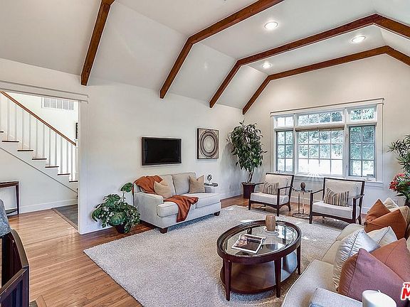 3-bed 2-bath French Country almost completely rebuilt in 2007. Foyer opens to the bright living room w/ HW flrs, wood-beamed ceiling & fireplace. Cook's kitchen w/ center island, custom cabinets, stainless steel appliances, newer back-splash & separate pantry. Formal dining rm w/ wall of windows & views of backyard. The bedroom on the 1st fl is ideal for a guest room or office. A full bath completes the 1st fl. Upstairs the master offers a wall of closets & windows that overlook the yard. A 2nd bed and spa-like bath complete the 2nd fl. Sprawling private yard, w/several dining & seating areas, grassy lawn and converted garage, ideal for private work-space, media room, yoga or Pilates studio! Add't features: separate laundry room, tank-less water heater, recessed lighting, copper plumbing & extra long gated driveway. close proximity to Hancock Park, Windsor Square, trendy shops and restaurants in Larchmont Village and the fabulous Marciano Art Foundation!