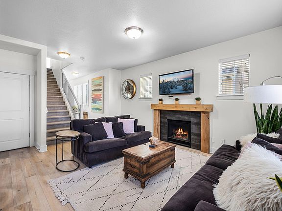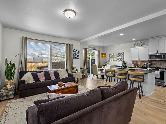 Fabulous light and bright three-story townhome boasts 2005 sq ft of living space. Large primary suite and 2 additional large bedrooms with bonus room on 3rd level. 2.5 bathrooms, attached garage, laundry room, fenced-in backyard, dining area, gas fireplace, and mountain views from 2nd story. HOA maintains the front yard landscaping. Modern kitchen with white cabinets, stainless steel appliances and has ample counter space with large island for entertaining. Off the slider is a fully fenced yard with dog run on side and low maintenance backyard.