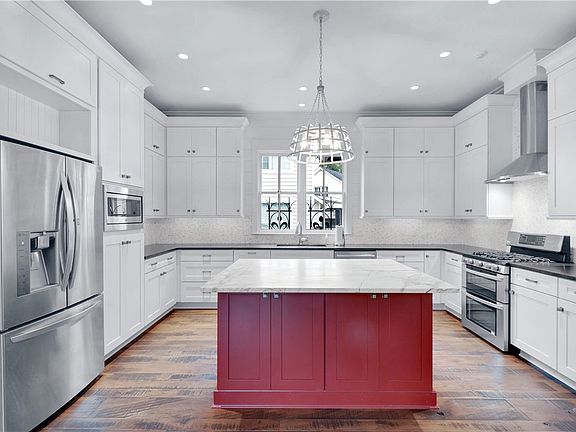 - Attic, Beamed Ceilings, Breakfast Bar, Crown Molding, Gourmet Kitchen, High Ceilings, Kitchen Island, Pull Down Attic Stairs, Painted Woodwork, Ceiling Fan(s), Fireplace