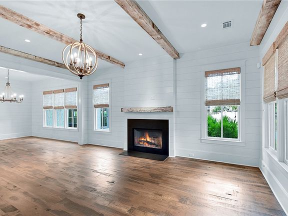 Coastal Elegance best describes this remarkable, like new home. Custom constructed for the owner by well known local contractor, Mark Coptsias, Picket Fence Properties, you will find not only his signature features of shiplap walls highlighted by additional moldings, and striking ceiling designs, but also upgraded fixtures and lighting carefully chosen by the owner to create a masterpiece of design and craftsmanship. The open floor plan creates a sense of spaciousness and flow with numerous options for furniture placement with a gas log fireplace providing a focal point for gatherings. The flooring throughout the house is true hardwood planks stained with "Dirty Oak" finish creating a warm, rustic look of timeless charm. The chef's kitchen is a true work of art! It's equipped with an abundance of cabinets and and soft close drawers for storage. The countertops are Columbian Black leather finish granite, highlighted by Calcutta Hexigonal Polished marble backsplash. The center island is crowned with a luxurious mable countertop. The appliances are upgraded and include a 5 burner gas range and duel electric ovens. The primary bedroom, located on the first level, features a tongue and groove cathedral ceiling highlighted by wooden beams. The beautiful en-suite bath features unique solid surface counters for the double vanity along with an equally attractive large frameless glass shower and heated flooring!! The generously sized closet includes a custom wooden shelving system. Additionally, the first level hosts a versatile office/study/BR and a powder room with marble vanity and upgraded fixtures. The laundry room is equipped with like-new LG washer and dryer and you'll love the flip up cabinet doors. Moving to the second floor, you'll find a flexible space/sitting room with built-in shelving which separates two guest suites, each with elegant, private bathrooms. The front bedroom (owner's favorite room in the house) is a true gem with an elevated tongue and groove ceiling, antique sconces, and tree top view. There is also a large walk-in attic with spray foam insulation. Exterior features include a 22'x24' double garage with 2 tall garage doors, a screened porch, open deck area, and fenced back yard with pavers. Grill is included with purchase.