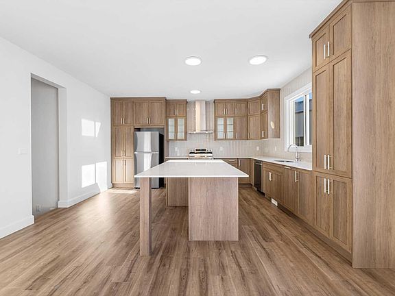 Airdrie is one of Alberta's fastest-growing cities, offering a perfect blend of modern conveniences and a close-knit community feel. Among its many vibrant neighborhoods, Southwinds stands out as a desirable, family-friendly community with excellent amenities, green spaces, and accessibility. If you're looking for a brand-new home that checks all the right boxes, this stunning 5-bedroom, 3.5-bathroom property in Southwinds is an ideal choice. Sitting on a spacious pie lot of over 7,000 square feet, this home provides ample outdoor space for gardening, entertaining, or simply enjoying the extra room for your family. Designed with both functionality and style in mind, the house features an open-concept layout, a main-floor bedroom with a full bath, and luxury vinyl plank flooring throughout—no carpet at all! Whether you're a growing family, an investor, or someone looking for a fresh start in a modern community, this property offers everything you need. One of the standout features of this home is its functional and spacious layout, making it suitable for large families or multi-generational living. The main level welcomes you with a bright and airy open concept design. The spacious living room is perfect for hosting guests, relaxing after a long day, or spending quality time with loved ones. Large windows bring in an abundance of natural light, creating a warm and inviting atmosphere. Adjacent to the living room is the modern kitchen, which boasts ample cabinetry, sleek countertops, and high-end stainless steel appliances. Whether you're a seasoned cook or someone who enjoys preparing quick meals, this kitchen offers the space and convenience you need. A large island provides additional workspace and doubles as a breakfast bar, making it an excellent spot for casual meals or morning coffee. The dining area, seamlessly connected to the kitchen, offers plenty of space for a large dining table, making family dinners and gatherings even more enjoyable. Sliding glass doors lead to the expansive backyard, which is one of the home's most impressive features. Main Floor Bedroom & Full Bath – Ideal for Guests or Multi-Generational Living