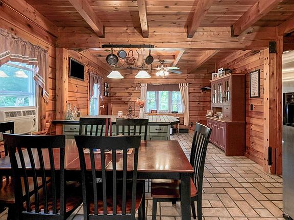 A little slice of heaven awaits! Situated on a private 2 acre lot, this cozy log home will warm your heart. After a long day, you will enjoy coming home to this private and peaceful setting as well as the endless views of nature and wildlife from your deck. The kitchen features a large island for all your friends and family to gather during special occasions. The kitchen is open to the dining area too, which is so handy when you have a house full! The living room has a wonderful large window and the wood stove will supplement the electric baseboard heat. A full bath and a 1st floor bedroom are off the hall. Upstairs, you will find a 1/2 bath and 2 more bedrooms with vaulted ceilings. The brand new roof is a huge plus...and if you wish to go green with solar panels, you could potentially heat the home for very little due to the electric heating system. The pool may remain or be removed, it needs a new liner and will be sold as-is. Easy commute to Sturbridge, Worcester, or Springfield.