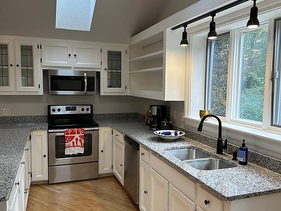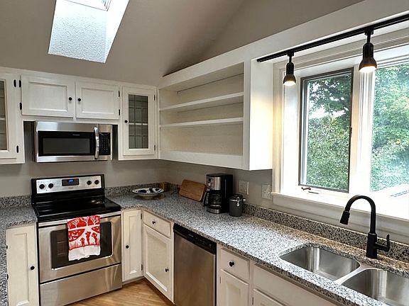 Newly renovated, gorgeous apartment in a 3 unit home on 1 acre. This spacious apartment has been completely remodeled throughout and sits on lovely, private grounds with covered parking. All new flooring, paint, bathroom vanities, granite counter tops, lighting and new washer, dryer and refrigerator, as well as new windows. This unit includes an upper and lower deck for dining and relaxing; with two entrances. Penfield schools, Wegmans, Starbucks, great restaurants 5-10 min away. Owner does not live on site. Open House scheduled Saturday 10/22/22 1pm-4pm Owner pays for water, lawn maintenance, snow removal and trash/recycling. Renter pays for gas, electric and cable/wifi. Absolutely no pets or smoking allowed. This unit has 2 designated spots, with covered parking/storage.