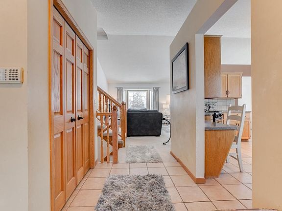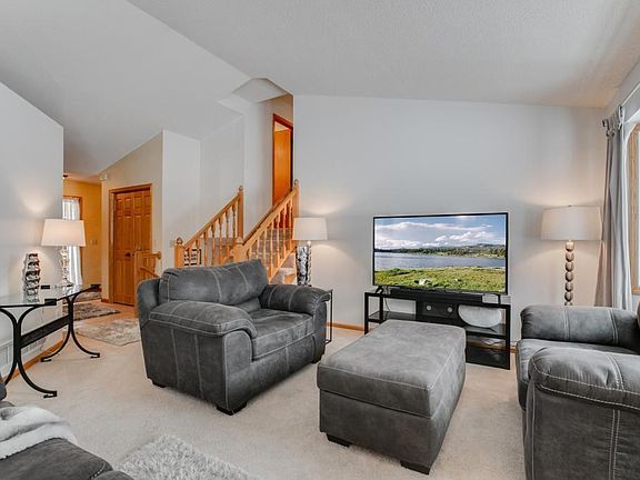 This is truly a rare gem finding a 1.5-acre property just outside of town!Plenty of room to roam and grow, or even plenty of space to build youroutbuilding one day! This 4 bedroom home features 3 bedrooms all one onelevel. Master Bedroom includes a large walk-in Closet. 6 Panel doors. NiceLarge Breakfast Bay plus a formal dining area with vaulted ceilings. Allstainless steel appliances. 3rd level has walkout to a poured stamped concretepatio and includes a cozy gas fireplace with a 4th bedroom and bath. The 4thlevel can be finished for even more additional square footage, or keep it as anice workout/play/rec area.
