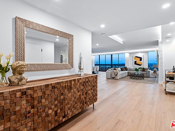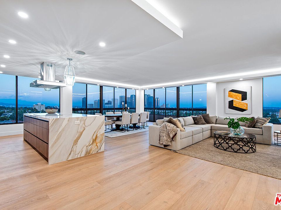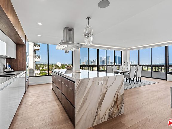 Stunning 3 bedroom, 2 full bath plus powder room, 2,136 sq ft condominium surrounded by glass and light. For the discriminating buyer, this 14th floor corner unit faces southeast with unobstructed skyline views of Century City and beyond. This exquisite unit was just remodeled, everything is brand new! With incredible craftsmanship, beautiful top of the line finishes, custom lighting throughout, beautiful new flooring, and a custom 60" fireplace, this unit exudes a modern zen vibe. The generous layout seamlessly connects the living, dining and kitchen areas. With an abundance of natural light, the spacious living room is rimmed with soft LED lighting creating a sumptuous space. The culinary kitchen has high-end appliances, custom cabinetry, and a seated waterfall-edged peninsula with induction cook top and beautiful light fixtures. The huge primary suite with views and fireplace has abundant closet space, a luxurious custom bathroom with two sinks, vanity, separate tub. The second bedroom has custom closets, en-suite bath with high end fixtures. Third bedroom could be office, den, guest room, nursery. Other notable features include in-unit laundry, lots of storage. The building offers a fitness center, pool, spa, sauna, 24-hour doorman, storage, two parking spaces in the secure garage and a rooftop deck complete with lounging areas and a Bar-B-Q. Totally renovated from top to bottom, everything is brand new and never used. This sophisticated condo is in an ideal location and offers the finest in modern LA living.