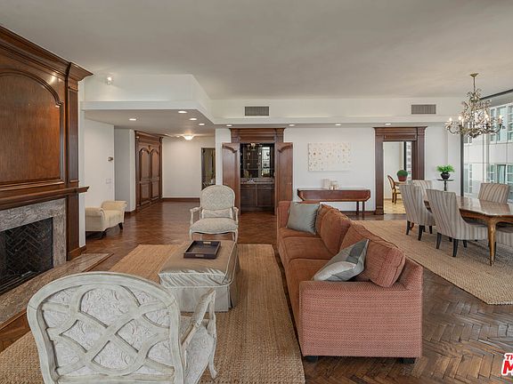 Welcome to the PENTHOUSE at the prestigious Westholme a rare offering atop one of the Wilshire Corridor's coveted full-service condo buildings. This expansive 2-bed, 3-bath residence offers breathtaking views stretching from the Hollywood Hills, to the glittering skyline of Century City, and out to the pacific ocean. Sunlight pours through floor-to-ceiling windows, illuminating the interiors, including a dramatic dining area, living room with a fireplace and wet bar closet, all adjacent to a spacious outdoor terrace, perfect for a peaceful retreat or lavish al fresco dining. This penthouse's elegant French Regency style, with high ceilings and exquisite moldings, elicits a bygone era of glamour. Rich wood paneling accent the walls, complemented by herringbone and versailles patterned hardwood flooring, all in pristine condition. The thoughtful layout includes generously sized bedrooms, both of which open onto a private balcony, with en-suite baths. The primary suite features dual walk-in closets, and a luxurious bathroom complete with double vanity, jacuzzi soaking tub and separate step-in shower. The unit also offers the potential to add a third bedroom, home office, or creative studio to suit your needs. All centrally located, under 5 minutes from Westwood Village, UCLA, Westfield Century City, and convenient access to the 405 freeway. Whether you're drawn to its classic charm, or envision a sleek modern renovation, this is a rare opportunity to create a bespoke residence in the sky. Full-service amenities include 24-hour concierge, valet parking, pool, and rooftop deck.