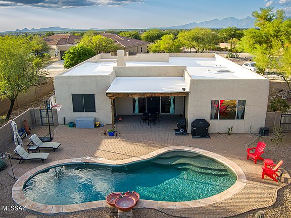 Beautiful 3 BED + DEN home in the quiet Loma Alta neighborhood, nestled on a Cul De Sac, .54-acre lot. Enjoy the open great-room concept. Spilt floor plan w/ Primary Suite Private door to patio & situated to gaze at the Rincon mountains. Plantation shutters add a touch of elegance, while surround sound speakers elevate your home experience. The spacious master suite features a walk-in closet, dual sinks, & a relaxing spa tub. Additional highlights include a dedicated home office, a 2-car garage w/ 3-foot extension for extra storage, & soft water system. Large windows & sliding glass door lead to your backyard oasis w/ a sparkling Saltwater Pebble Tec pool, featuring a waterfall extended pavered patio perfect for relaxing or entertaining