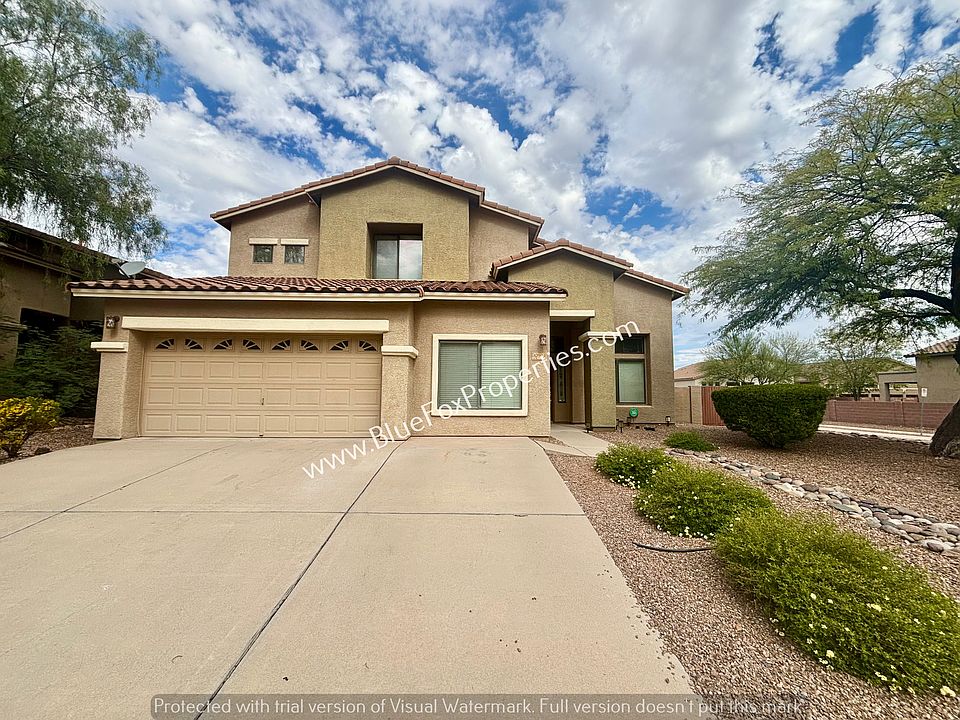 Welcome to this enchanting 5-bedroom, 3-bathroom home! Step inside to a spacious family room featuring an elegant staircase that leads to the upper level. Continue into the open-concept great room, dining area, and kitchen. The kitchen offers ample cabinet space, a center island, dishwasher, stove, built-in microwave, and refrigerator. Laundry room with washer and dryer hookups. The primary suite features a luxurious bathroom with a dual-sink vanity, private toilet room, separate shower and soaking tub, and a generous walk-in closet. A bedroom is conveniently located on the main floor, ideal for guests or a home office. Upstairs, you'll find a versatile loft area, three additional bedrooms, and a full guest bathroom. Step outside to enjoy the expansive backyard with a covered patio, perfect for gatherings or relaxing evenings outdoors. A two-car garage completes this beautiful home. It's a perfect place to call home!