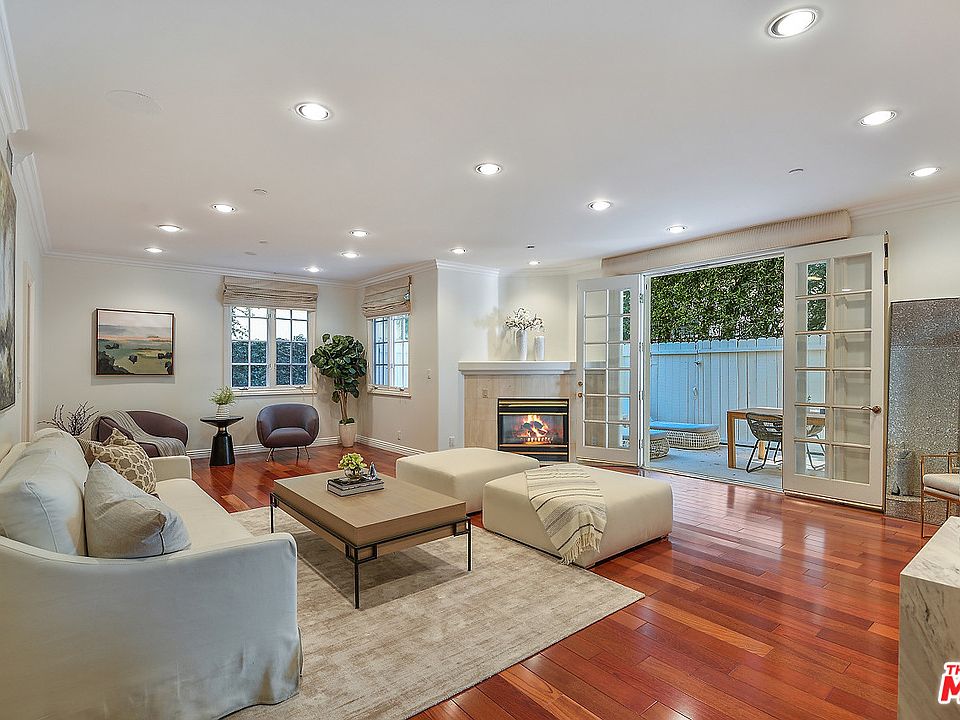 This stylish two-level residence in the much admired "Ashton House" is a fantastic find on one of the loveliest streets in Westwood. Enjoying a desirable corner location on the ground level, this large condominium features an open living room, flowing seamlessly via its French doors to the expansive private outdoor terrace where you'll relax, dine and entertain. The formal dining room, which can serve as a den or playroom, also has French doors opening to the beautiful terrace. The kitchen offers ample cabinet space and has a cozy breakfast nook. Two bedrooms upstairs include the oversized Master with a fireplace, en-suite bathroom and abundant closet space with two large walk-in closets. The home also features beautiful wood flooring, recessed lighting, powder room, formal entry, inside laundry room, central heat and air conditioning and two underground parking spaces. This pet-friendly community is just minutes from Beverly Hills and UCLA with easy access to all of the Westside.