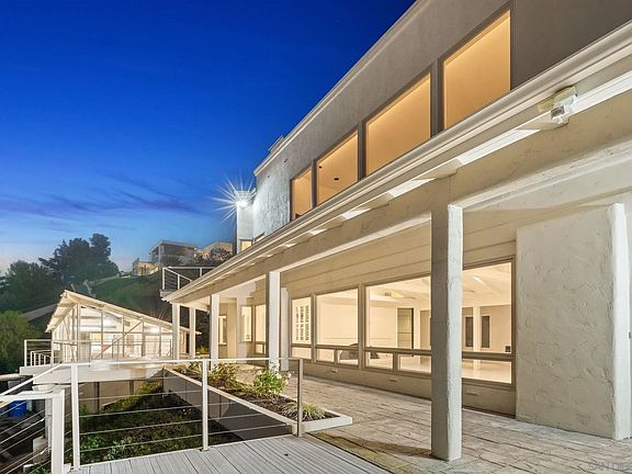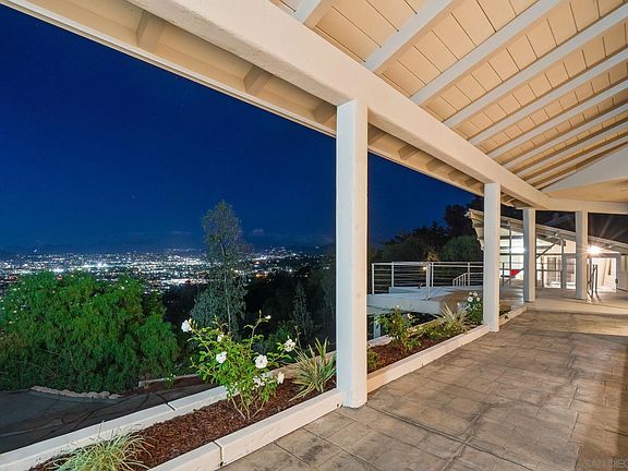 Perched on a private road with spectacular 180° panoramic city and mountain views, this 4,646 sq ft architectural hillside estate offers incredible scale, privacy, and flexibility. The main home features 4 bedrooms, 4.5 baths, expansive view decks, multiple indoor/outdoor living areas, and floor-to-ceiling windows flooding the home with natural light. The luxury master suite is exceptionally large and includes its own kitchenette, his & her toilet stalls, and two oversized separate walk-in closets, creating a true private retreat. A fully renovated ADU with private entrance provides ideal space for guests, extended family, or rental income. Enjoy massive wrap-around view decks, covered patios, terraced landscaping, and stunning day and night views from nearly every room. Located in the highly desirable Mount Helix area, this home offers rare privacy while still being minutes from La Mesa Village, dining, shopping, and freeway access. A one-of-a-kind property with unmatched views and endless potential.