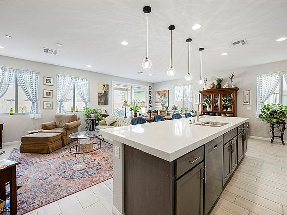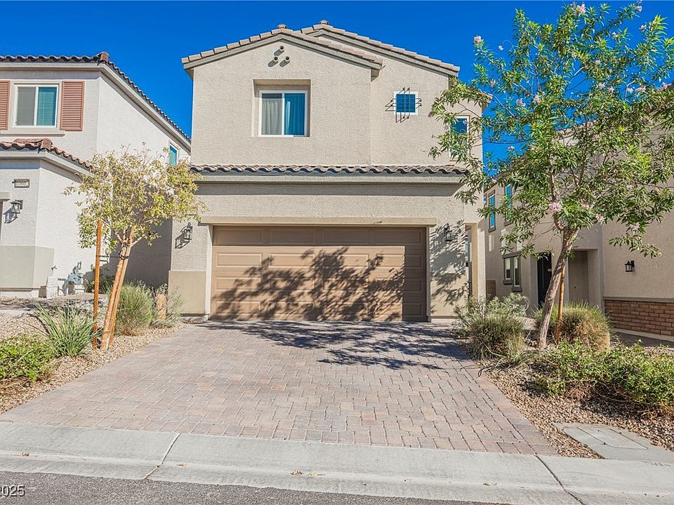 Gorgeous two-story home, nestled in a quiet gated community within the sought-after Skye Canyon master plan. With 3 bedrooms and 1,704 square feet of thoughtfully designed living space. The open-concept kitchen, living, and dining area is ideal for entertaining with beautiful tile flooring. Kitchen features all stainless steel appliances and custom maple cabinets. Serene mountain views that create a peaceful backdrop to your everyday life. Step outside to enjoy the low-maintenance desert landscaping. As a resident of Skye Canyon, you'll have access to a vibrant community center featuring a popular local coffee shop, fitness center, pool, and a calendar of events. Outdoor enthusiasts will love the walking trails, splash pads, playgrounds, pickleball and basketball courts, and lush green spaces—all framed by breathtaking views of Mount Charleston. Make Skye Canyon home today!