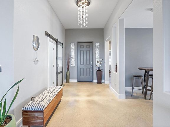 Located in a gated enclave within the prestigious master-planned community of Southern Highlands, this beautifully upgraded and meticulously maintained single-story home offers modern comfort and luxury. The fully renovated kitchen is a showpiece, boasting all Thermador appliances & 3rd oven GE Monogram, a wine fridge, and custom cabinetry, perfect for entertaining and everyday enjoyment. The spacious great room layout features a gas fireplace for cozy winter nights, while concrete flooring throughout (excluding bathrooms) adds a sleek, low-maintenance touch. Bathrooms have been partially updated with stylish finishes. Stay cool in the summer with two newer A/C units (2 years old) and enjoy energy efficiency with a tankless water heater. A 3-car garage provides ample space for vehicles and storage. This home combines thoughtful upgrades W/with timeless style in one of Las Vegas’ most sought-after communities, don’t miss your chance to make it yours!