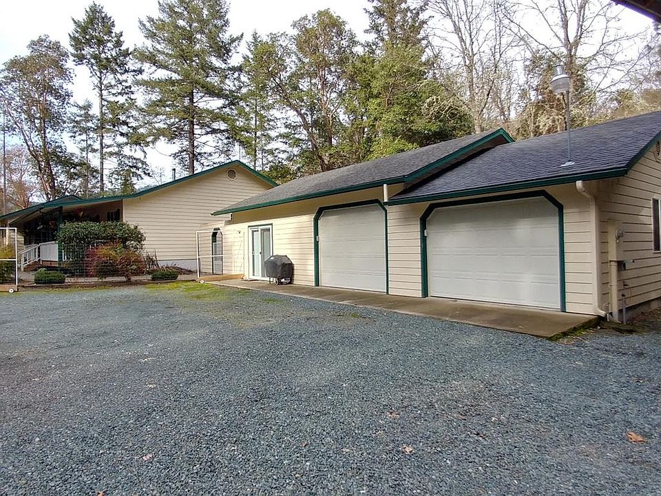 Welcome to the nature of Oregon with serene a wooded paradise. Just outside the city of Rogue River and the Interstate 5 Corridor, one level home with extra bonus room off of Two Car Garage and if you have an RV, this new pole barn has the coverage for a 37' RV and a 258 sq. foot shop. Waterfalls and pond stocked with Goldfish. Vaulted ceilings, hardwood floors, beautiful upgraded kitchen with stainless appliances, A family room off Living room that can be a gym, TV room or whatever and access to the backyard. Large closets, large master bedroom, all LED lights throughout, extra insulation and a great wood burning stove that basically heats the whole house. Your cozy retreat awaits you. too much to list so call your Realtor today for a showing. 2158 Sq. feet on main house and additional 358 ft. in Bonus room. Two master suites. All information deemed accurate but not guaranteed and subject to change at any time. Buyer to perform all their own due diligence. Well insulated home.