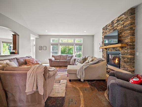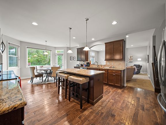 The finished walkout lower level adds generous entertaining space with a wet bar, large flex area, a full bedroom and full bath, and access to the patio and backyard. Additional highlights include a three-car garage and ample indoor storage.