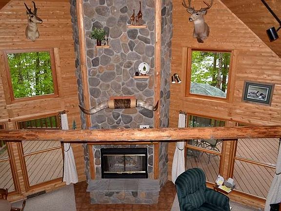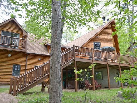 This custom built Rapid River Rustic cedar log-sided chalet has plenty of room for all of your friends and family! This is truly an idyllic Northwoods home featuring an open concept living area which has a soaring cathedral ceiling with log beams, a massive cultured stone fireplace and a large breakfast bar with seating in the kitchen. The 2nd level features a loft area with master bedroom/master bath with a safe step tub and a finished 492 sq ft bonus/bunkroom over the garage with access from both the inside of the home and the garage. It has a separate furnace and balcony. The partially finished lower level family room has a built-in fireplace with a pine surround and a large dry bar. There is plenty of outdoor entertainment areas with the 15'x42'deck, 6'x14' roofed entry porch and 6'x14' enclosed porch. Enjoy peaceful Malby Lake with the sandy shoreline and large L-shaped pier on wheels. With nearly 1.75 acres of land, there is plenty of room to play and garden.
