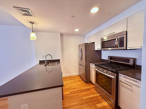 You’ll also love escaping to your enormous bedroom measuring a whopping 11'3 x 15'1", which easily allows for a king-size bed, furniture set and desk or space for your Peloton. Additional apartment features include a huge 28 sf walk-in closet, a vented LG washer and dryer, pristine white oak hardwood floors, and central AC.