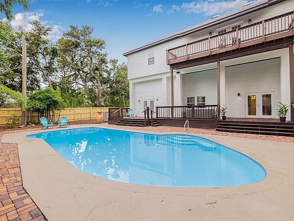 BIG PRICE DROP! BEST DEAL IN OLD SOUTHEAST! 106 22nd Ave SE is a truly one-of-a-kind estate. Situated on a nearly triple lot in a NON-FLOOD ZONE, this 8 bed plus a third story loft, 5 and a half bath property includes a studio apartment above the garage—perfect for guests, rental income, or multigenerational living. Renovated by the Lender family (of Lender Bagels fame, with included signed artwork by Jay Lender of SpongeBob and Hey Arnold), this property blends artistic charm with extensive modern upgrades. Constructed like a fortress with concrete poured pilings ensuring complete peace of mind. The ground floor features 3 bedrooms and 2.5 baths, including a luxurious primary suite with private yard access, dual walk-in closets, a wet bar, and a steam shower system. Upstairs you'll find 4 additional bedrooms, 2 bathrooms, and a private balcony overlooking the pool. The above garage apartment includes a full bath, kitchenette, W/D hookups, mini split, and tongue-and-groove ceiling. Outdoor amenities include a HUGE pool, a jacuzzi, an outdoor shower, gazebo, tiki hut, brand-new landscaping and fencing, RV and boat parking, and custom decking ideal for an outdoor kitchen, yoga platform, or lounge area. Some of the upgrades include a newer roof (2022), newer mini splits (2022), newer HVAC (2019), brand new fencing (2025), brand new landscaping (2025), PGT impact-rated windows, skylights, and doors, all new plumbing, all new wiring, custom Cuban tile and hardwood floors, surround sound speaker systems, crown molding, custom built-in bookcases and closet systems in every room, luxury lighting, and so much more. The dining area dazzles with vaulted ceilings, exposed beams, and skylights. The chef’s kitchen is outfitted with a gas range, newer appliances, custom pull-out cabinetry and built ins. Just blocks from Lassing Park and minutes to downtown St. Pete, this exceptional home offers space, flexibility, and craftsmanship rarely seen. Move-in ready and truly irreplaceable. Call today for a private showing of one of the most unique estates in all of Tampa Bay!