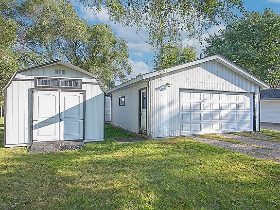 An oversized 2-stall detached garage, accessible from the alley, provides generous space for vehicles or a workshop, while a large shed in the backyard ensures you have plenty of storage for tools and outdoor equipment.