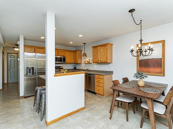 Welcome home to this well-designed townhome featuring an open main floor plan perfect for everyday living and entertaining. The large kitchen boasts a center island with counter seating, recessed lighting, and newer stainless-steel appliances (just 3 years old). The nice-sized dining area is just steps from the kitchen and it flows seamlessly into the spacious living area with access to a private patio. A generous foyer with closet, convenient main floor laundry, and half bath complete the main level. Upstairs, you’ll find a spacious primary bedroom with a huge closet and pass-through access to the full bath, along with a nicely sized second bedroom with a walk-in closet. An attached one-stall garage provides added convenience. Pets are allowed! Move-in ready and designed for comfort—this home is a must-see!
