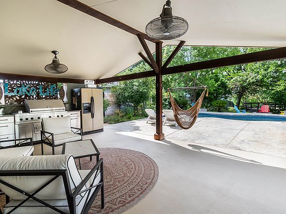 Welcome to 106 Apache Trail on Lake LBJ, where all the outdoor living amenities give you your own private oasis! The backyard greets you with an outdoor kitchen space including a full fridge & a large viking grill and side burners, a salt water pool, outdoor shower, fire pit, full size party deck over the boat dock, electric lift for boat dock and ramps for jet skis, sprawling 186 ft of waterfront and don't forget the luscious green grass giving you space for all your outdoor games! The main house has an open floor plan and gives you 2 beds and 1 bath and the guest casita provides another bedroom and full bath as well as your laundry facilities equipped with a washer/dryer combo machine. This home is being sold fully furnished just bring your swimsuit and toothbrush!! The POA park and boat ramp is located right out the front door for convenience of launching your boat or extra places to swim!
