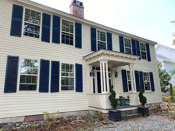 The Dr. Isaac Green Mansion - a beautiful, historic building in downtown Windsor with a rich past. Downtown zoning allows for many options for use. Many original historic features still in tact, such as floors, wavy glass windows, doors, hardware, etc. Previously operated as a B&B, though we were on track to convert back to single family residence - this means only 4 bedrooms, with all of ground floor being living space. (You could still do a 6 bedroom B&B.) Work completed in the last 3 years include new roof, chimneys repointed, Driveway paved, 200 amp electrical service upgrade, refinished original wide plank wood floors in half of the home, 2 renovated bathrooms, 25 new custom low E storm windows, newly painted exterior, attached barn structure repairs currently in the works make for a total and comprehensive exterior restoration. There is still work to do on the interior. (the extent depends on your end use and budget.) Currently a fully functional "make shift" Ikea kitchen inside the main house (complete with dishwasher!) but floorplan allows AMAZING potential for a new kitchen. There is also a larger kitchen in the attached two story carriage barn that could be restored back to a Bed and Breakfast type use. (Hope to get these barn pictures up soon, but it currently shows like a cross between a wood scrap yard and a Hoarder’s dream.) Main house interior still needs bathroom, laundry, some plasterwork repair and a couple of new ceilings, and painting throughout most of the interior. We have freshly painted the living room, entry and stair hall, one bedroom, and two of the 6 baths. The gardens are lovely and, even in the center of town, there is a sense of privacy.