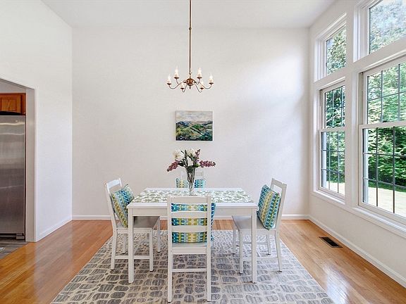 Sun-filled home with marvelous nature and garden views! This end-unit 55+ townhouse is a "best bet" within a 4-home cheery enclave! The two first floor bedrooms are spacious, and have plenty of closet space. The primary suite has a full bath and 2 closets. The full second bathroom is perfectly placed with a laundry closet. Gracious Cathedral dining area and living room, have a grand and spacious feel yet there's a cozy aspect as well. Entertaining with family and friends is easy with the new slider to the Cathedral screened-in porch with impressive landscaping beyond. The amazing above-grade lower level great room is huge offering an office space, and room for multiple hobbies, a work-out area and more! The additional lower level room can be used as a second office. The grounds are stunning and well cared for. Private garage space with storage and outdoor space. Move-in condition with gorgeous hardwood floors. New fridge, stove and dishwasher and slider. Abuts trails and conservation.