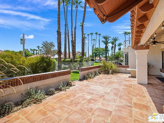 Beautifully positioned in Desert Falls Country Club, this spacious single level, single story 2BD/2BA condo with modern finishes celebrates soaring beamed ceilings, natural light, and seamless indoor-outdoor living. You will love the plank-style ceramic tile, solar shades, custom valances, and solid-core wood doors plus two patios and a central atrium to create a bright, inviting flow! Five sets of French doors open to outside areas and an east-facing terrace that is steps from a resort-style pool and spa. Your evenings will glow with poolside ambiance! The living room features a vaulted ceiling, fireplace, and wet bar while the open kitchen showcases stylish finishes, brushed nickel hardware, and a breakfast nook that opens to the gated courtyard. A dining room off the kitchen also opens to the outside, enhancing the flow for entertaining. The primary suite enjoys vaulted ceiling, patio access, and atrium views with Trex decking and new cover. The primary ensuite bath includes a large, tiled shower and dual vanities. The guest bedroom with full bath also opens to the courtyard. Pride of ownership extends to the 2-car garage with custom cabinetry. Fee Simple land and some of the lowest HOA dues at Desert Falls Country Club add appeal, along with resort pools, fitness, pickleball, tennis, and a championship golf course rated top 10 by the SCPGA and 4 stars by Golf Digest. Take the Matterport Virtual Tour for the full experience!